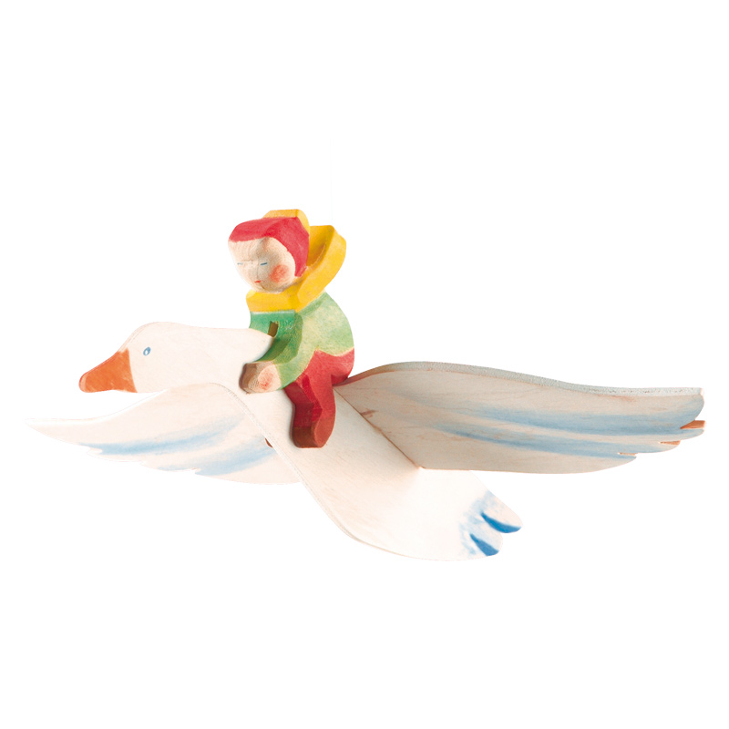 Schönes für das Kinderzimmer, mit sanften Farben handbemaltes Nils Holgerson Mobile von Ostheimer.