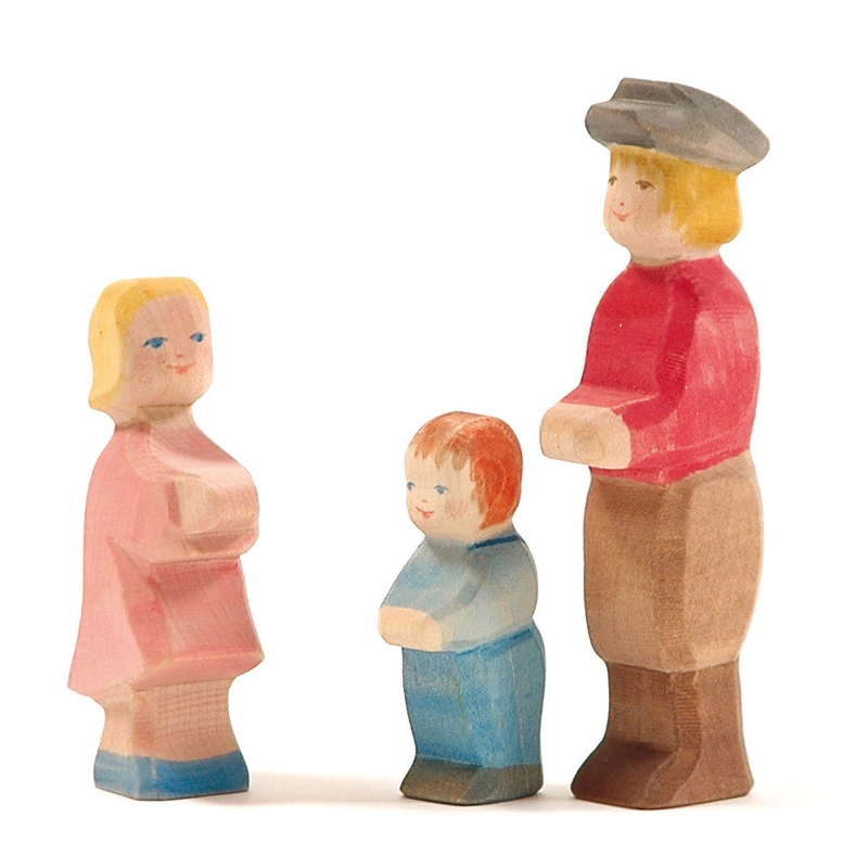 Ostheimer Familie Figur Nr. 10017. Höhe: 6,3 cm. Dezent behandelt bewahren sich die Holzfiguren ihre Natürlichkeit.
