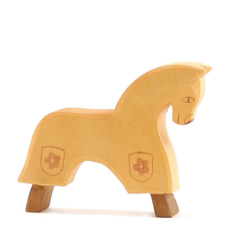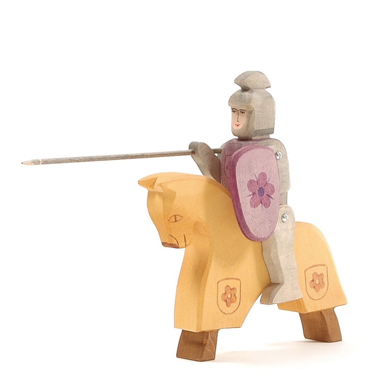 Ostheimer Spielzeugfiguren werden in Handarbeit aus heimischen Hölzern hergestellt. Die verwendeten Farben sind unschädlich. Typisch für die Ostheimer Spielzeugfiguren sind die weichen Formen und die zurückhaltende Farbgebung. Der unverwechselbare Charakter der Figuren regt die Phantasie der Kinder an. komplett Ritter Nr. 2751 mit Pferd Nr. 2759