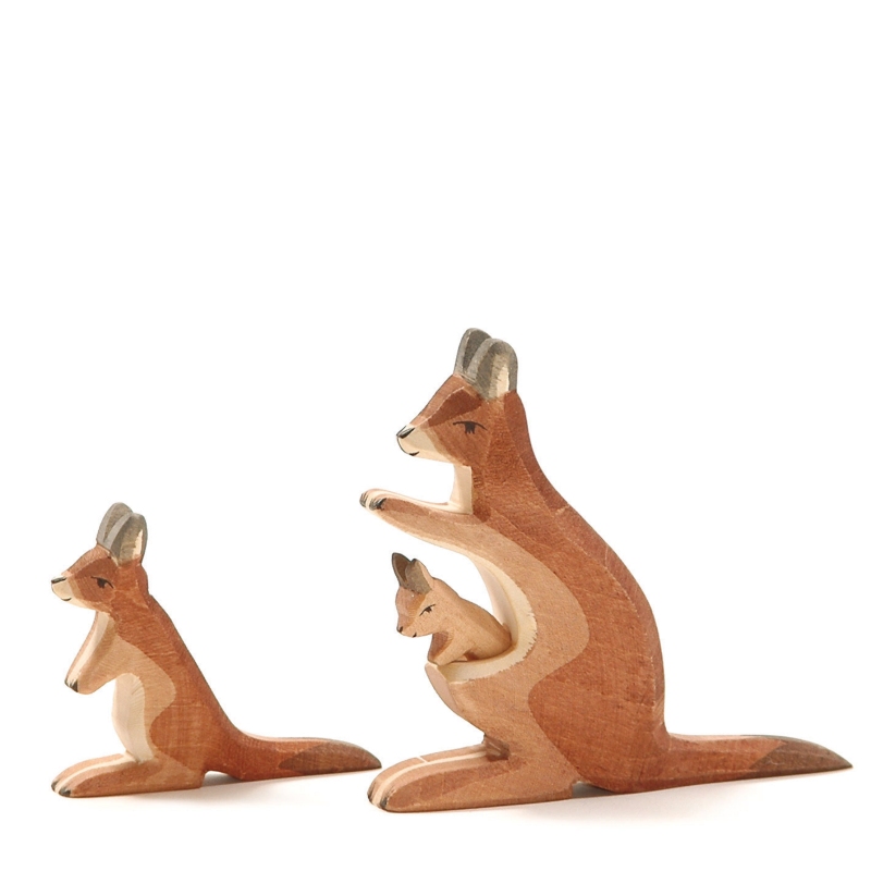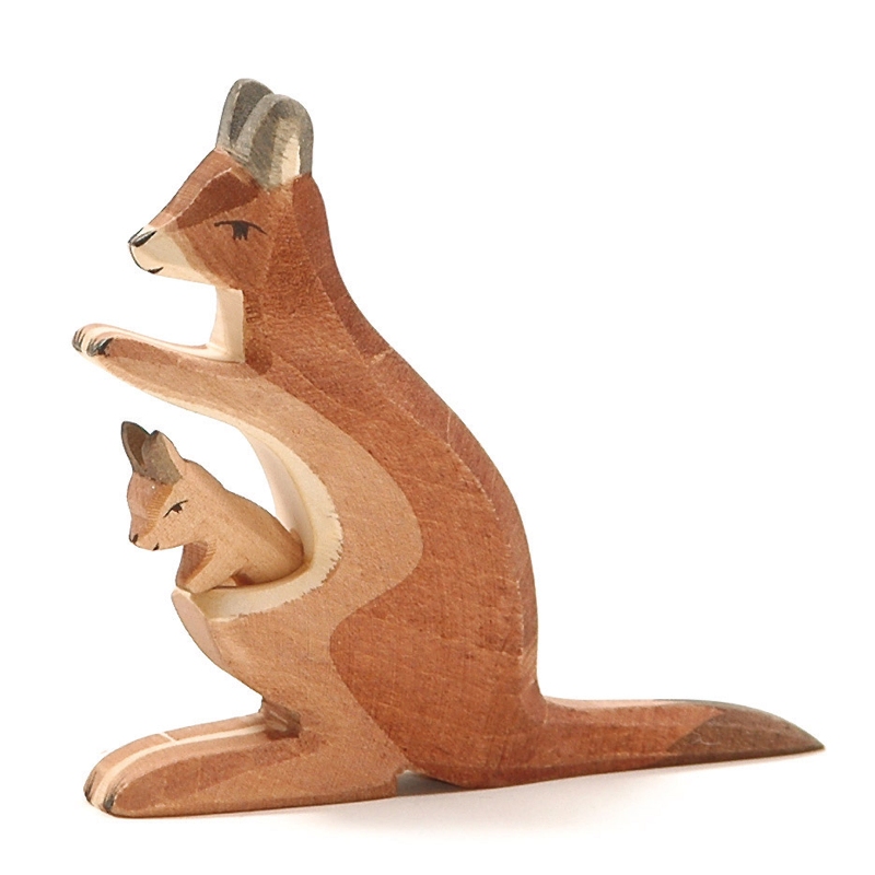 Das Ostheimer Känguru zeichnet sich, wie alle Produkte von Ostheimer, durch eine herausragende Qualität und liebevolle Gestaltung aus. Vom Entwurf bis zur fertigen Figur ist ein hohes Maß an Fingerspitzengefühl gefordert, denn die Herstellung dieser handgestalteten Tiere setzt Sorgfältigkeit und Präzision voraus. Zudem legt Ostheimer großen Wert auf hochwertige Öle und Lasurfarben, die die Holzstruktur durchschimmern lassen. Und das zeichnet sich aus: Das Känguru mit Kind wird so zu einem einzigartigen Produkt mit individueller Prägung. Auch bei der Wahl der Rohstoffe ist Ostheimer sehr gewissenhaft und bezieht Hölzer aus nachhaltiger Forstwirtschaft. Ostheimer-Tiere sind also nicht nur für Ihre Kinder eine liebevollere Alternative zu maschinell gefertigtem Spielzeug, sondern auch für die Umwelt eine gute Sache.